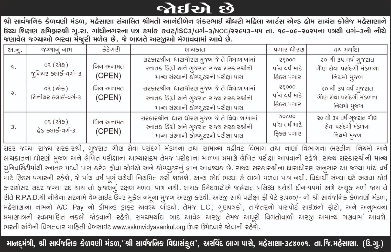 Shri Sarvajanik Kelavani Mandal, Mehsana. In Their Commitment To Further And Foster Education At All Levels And Stages, Have Not Lagged Behind In Making Their Mite In This Sacred Cause Of Bringing About Light By Eliminating Illiteracy And Ignorance From The Masses And Thereby Help Them To Stand Up Erect To Face Bodily The Realities Of Life. To Realize This Goal We Have Shifted.